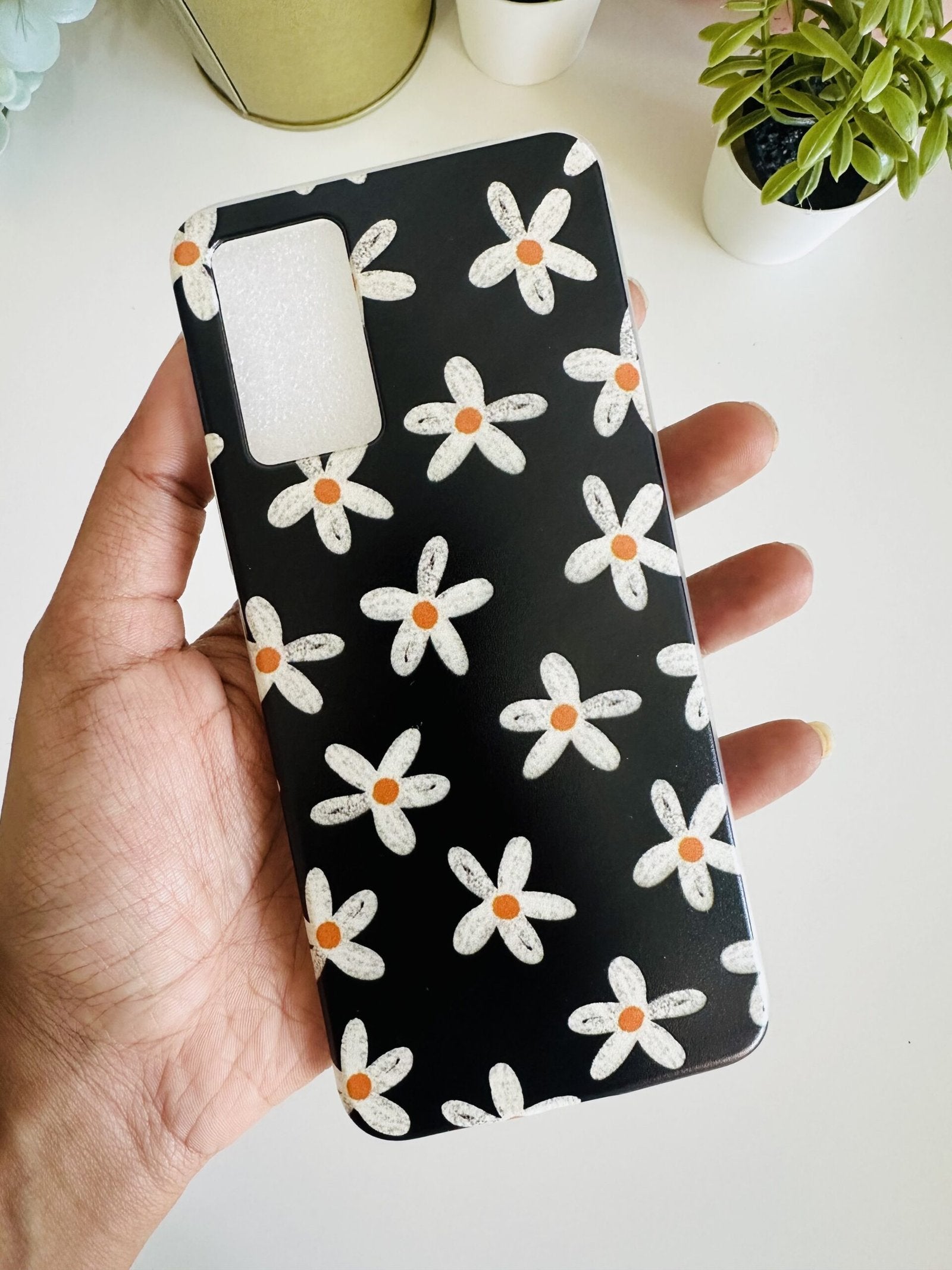 Black white cute flowers case