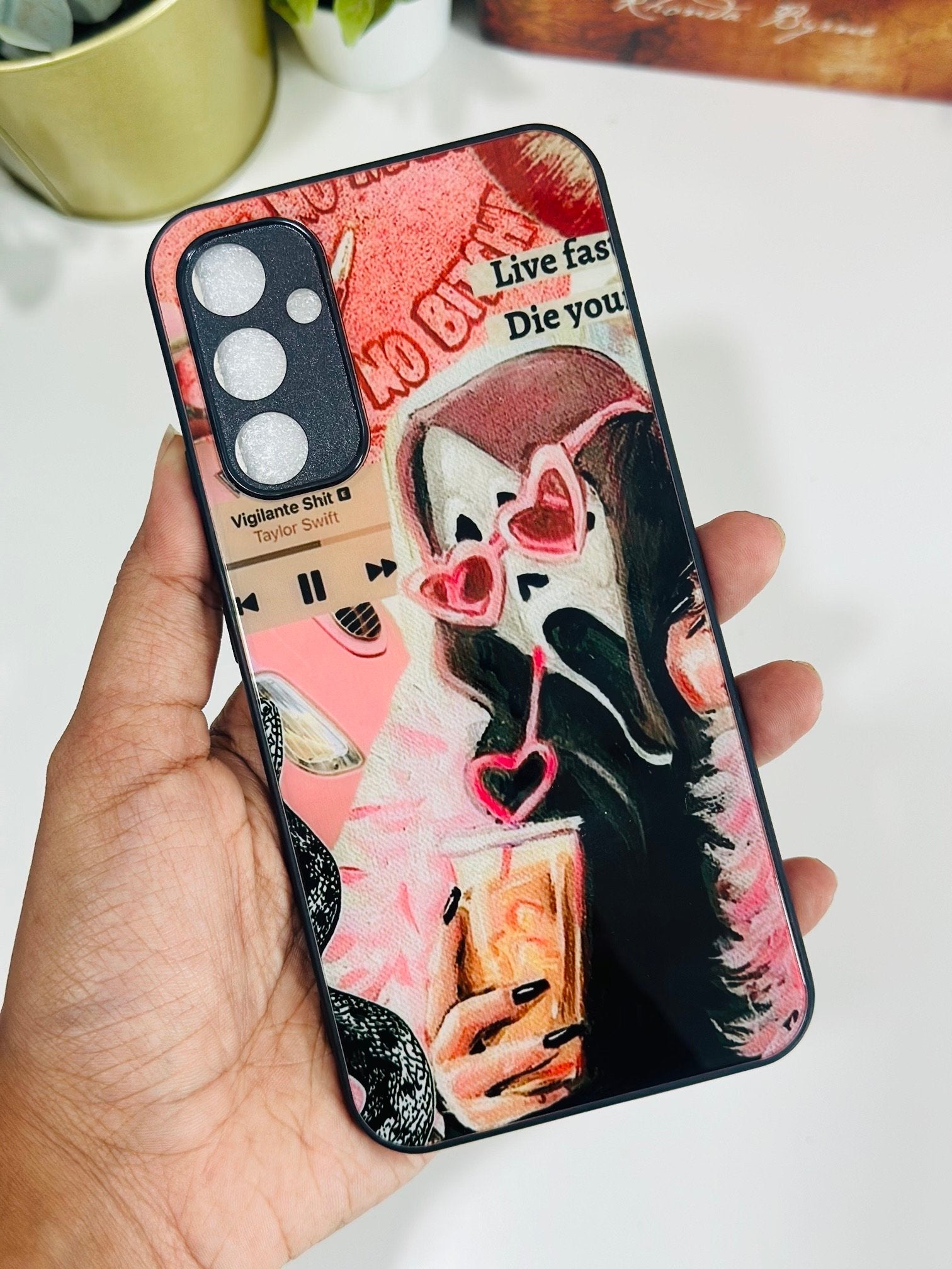 1. GLASS case - have black colour border in the sides which are shock proof , gives 360 degree protection with camera protection and gives a shiny and classy look