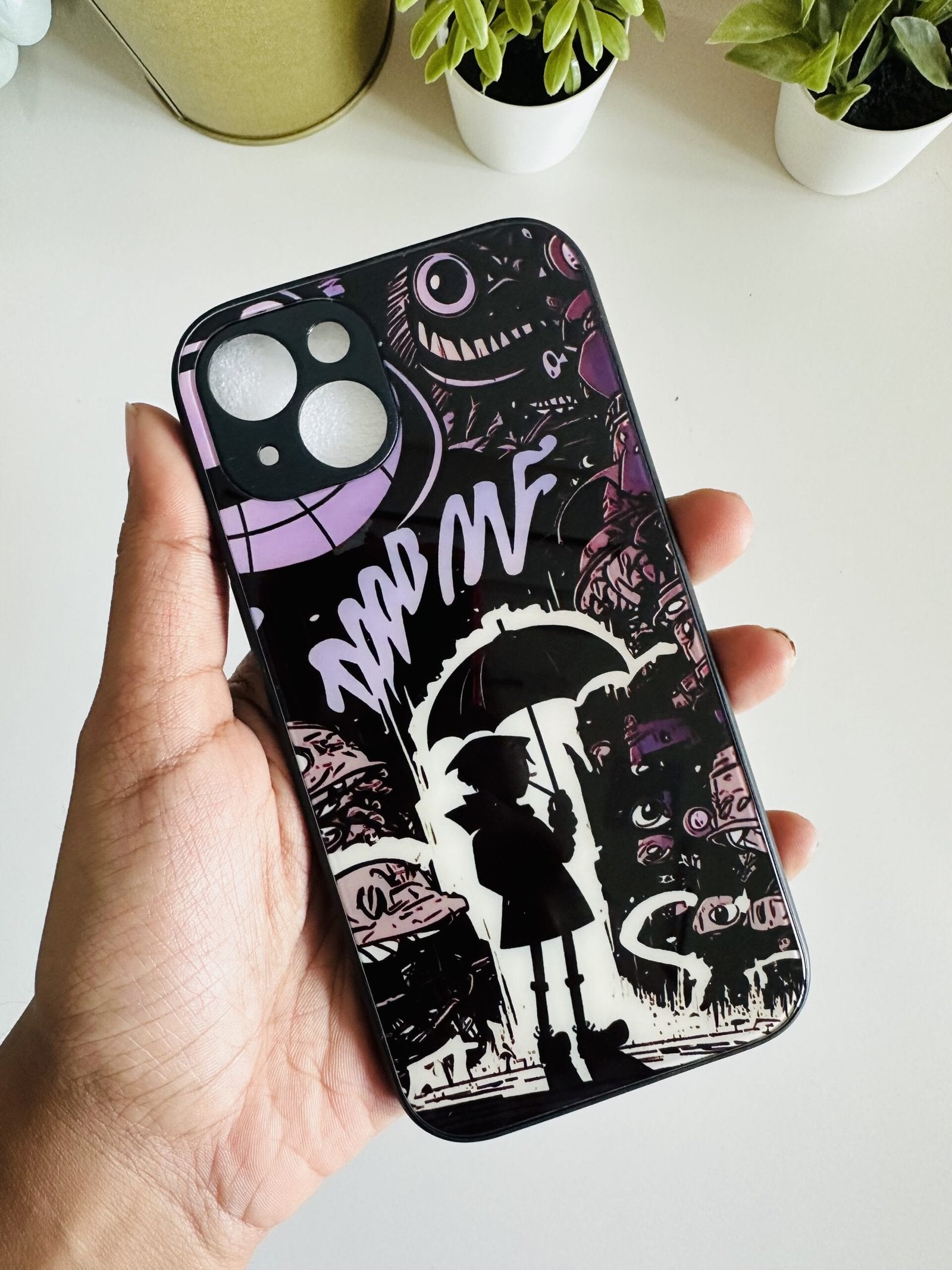 1. GLASS case - have black colour border in the sides which are shock proof , gives 360 degree protection with camera protection and gives a shiny and classy look